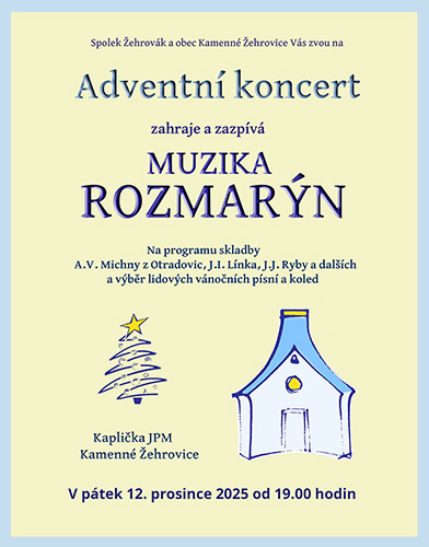 24.8.2025 Jen připomínám, že v září se v kapličce uskuteční slavnostní mše. A mohu Vás už i pozvat na říjnový koncert tria Kovacz, Fisher a Jedlinský: