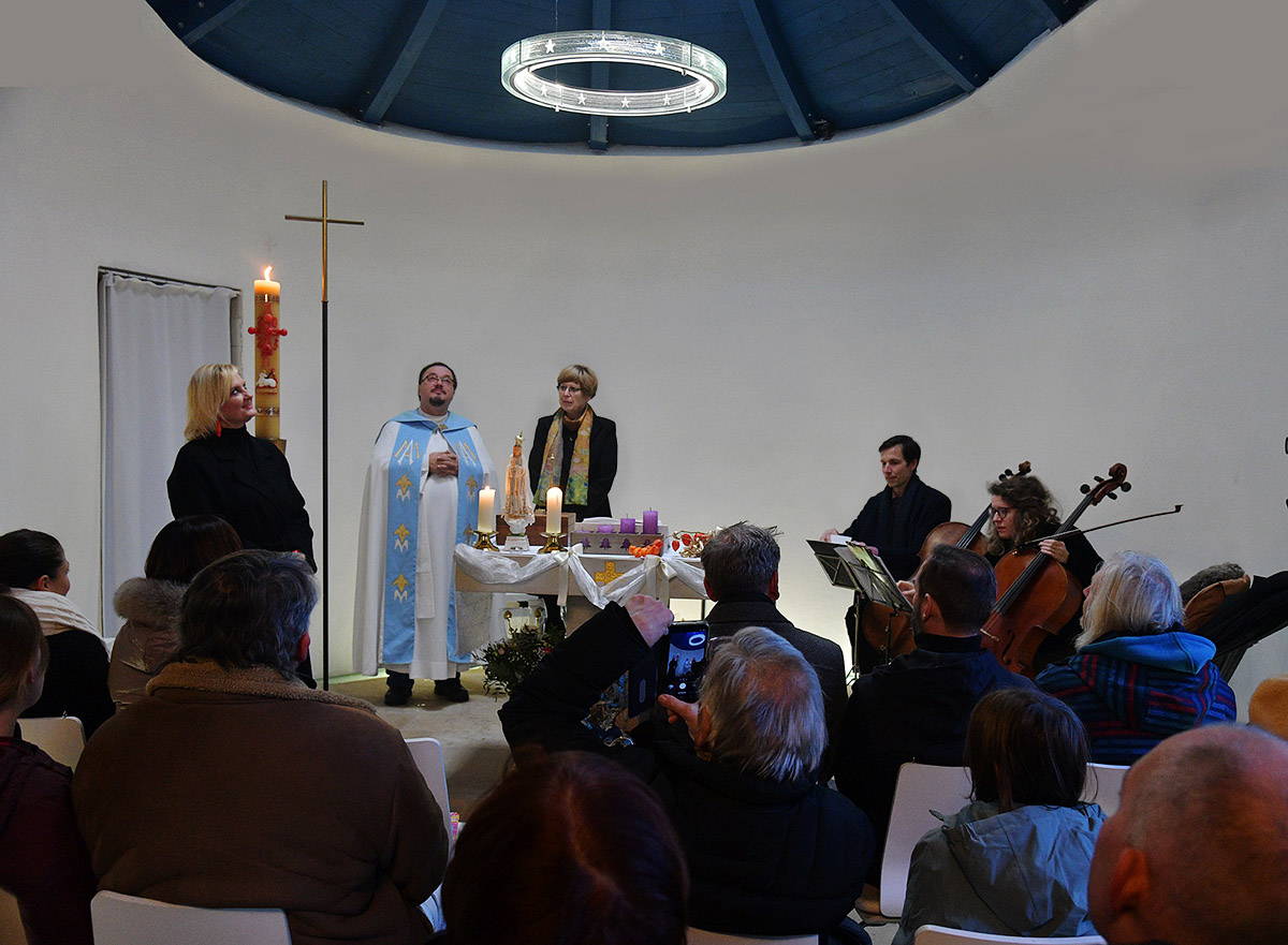 6.12. Ještě koncem listopadu jsme v kapličce slavnostně přivítali nový lustr (a další úpravy), za naše podporovatele tentokrát přijela i středočeská paní hejtmanka Petra Pecková nebo paní Petra Lindovská za MAS Svatováclavsko (evropská dotace, viz níže). Přivítali jsme také architekta kapličky T. Kocourka, tvůrce lustru Z. Kudláčka, uměleckého kameníka V. Orla, který vytesal sochu anděla i naší starostku paní L.Husarikovou. Lustru požehnal místní farář pan M. Uličný a o hudební doprovod se postarali violoncelloví virtuosové J.+M. Pechovi. Ještě upozornění: Začal tedy advent a už 12. prosince v kapli zazpívá Muzika Rozmarýn (viz pozvánka níže).