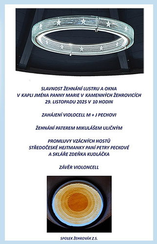 24.8.2025 Jen připomínám, že v září se v kapličce uskuteční slavnostní mše. A mohu Vás už i pozvat na říjnový koncert tria Kovacz, Fisher a Jedlinský: